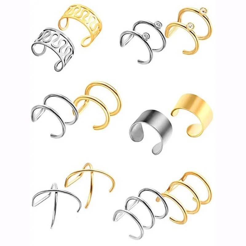 Серьги-клипсы женские в Корейском стиле, 6 паркомпл., золотые для ушей клипсы с листьями и манжетами, имитация пирсинга, без хряща, 2021