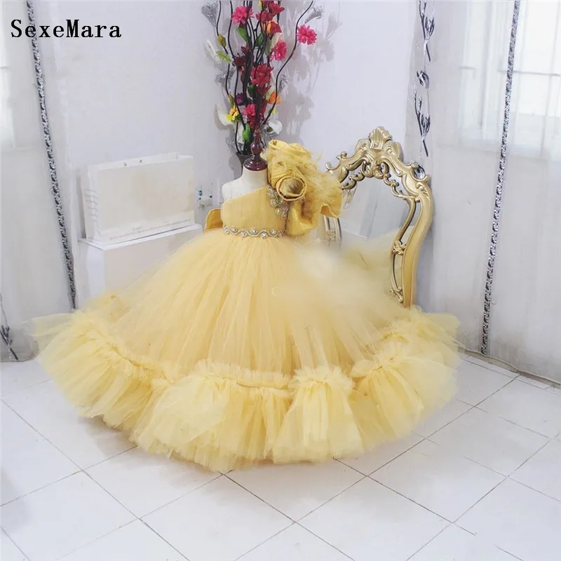 Желтые пышные платья для девочек, детская одежда, бальное платье с ...