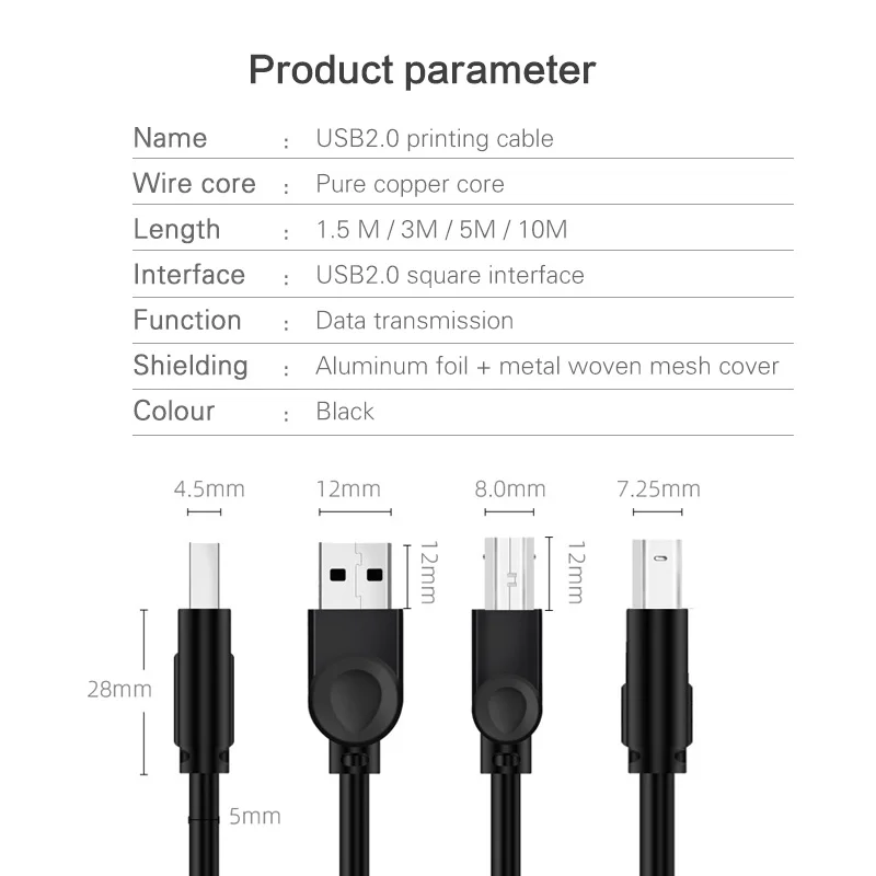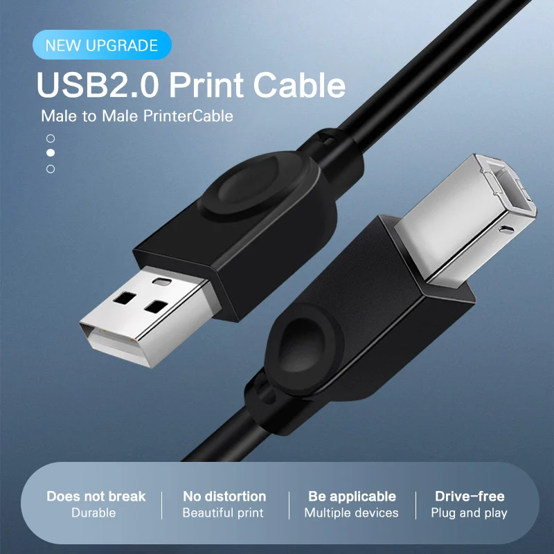 Кабель USB 2,0 для камеры, шнур для принтера Epson HP Canon, 1 м, 3 м, высокоскоростной Удлинительный кабель для принтера, кабель для передачи данных