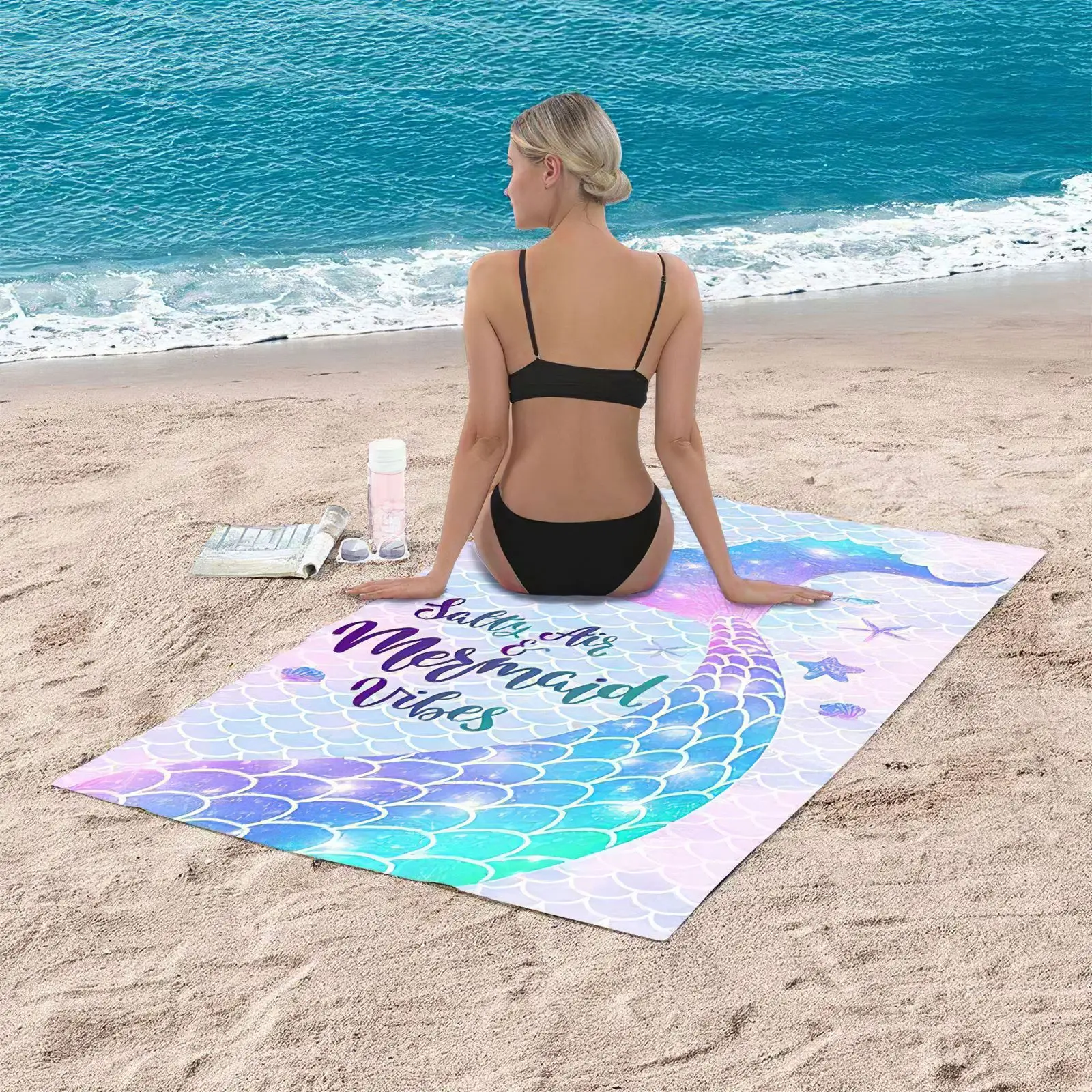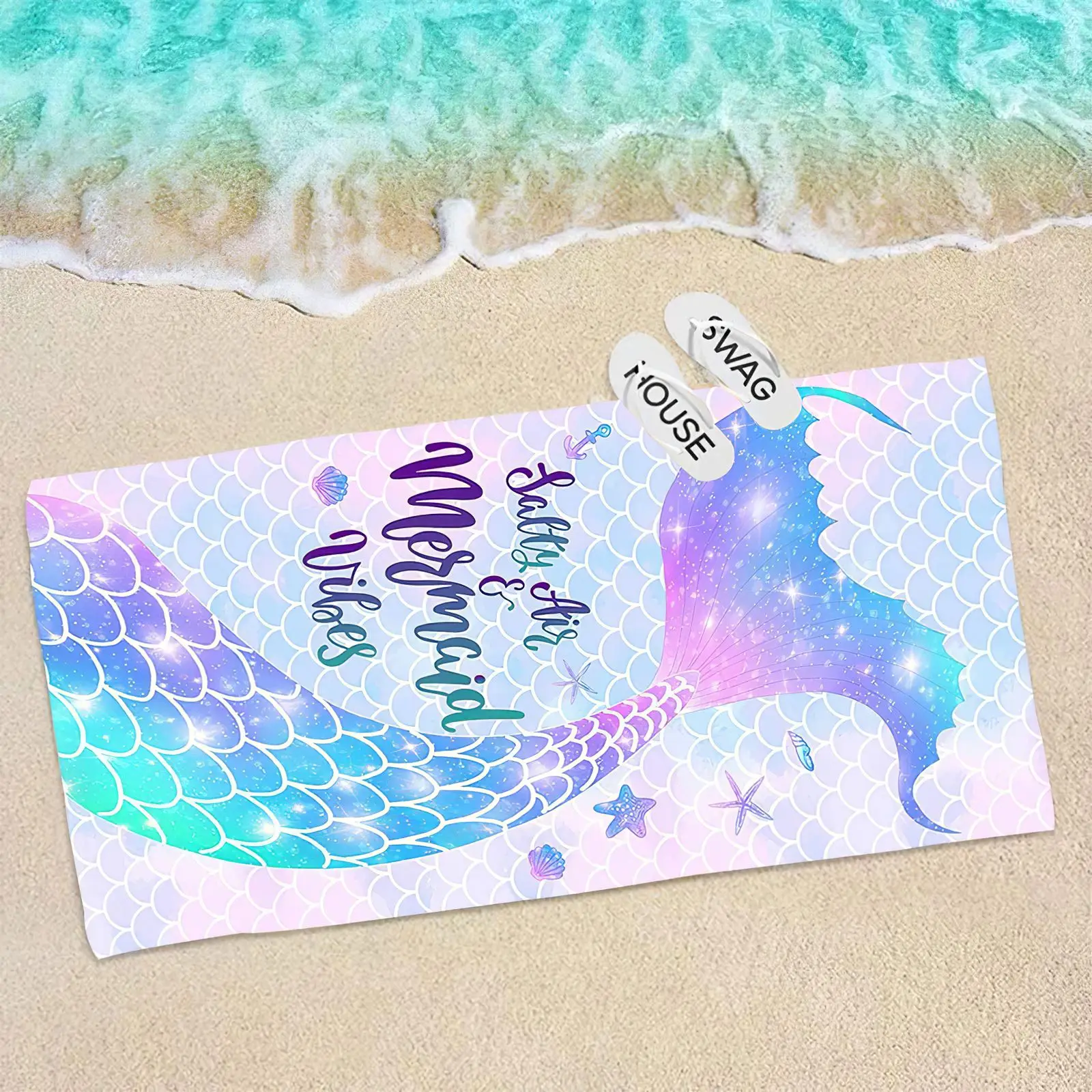 Пляжное банное полотенце с рисунком русалки, банный халат из волокнистой ткани, модное банное одеяло, пончо для плавания и серфинга