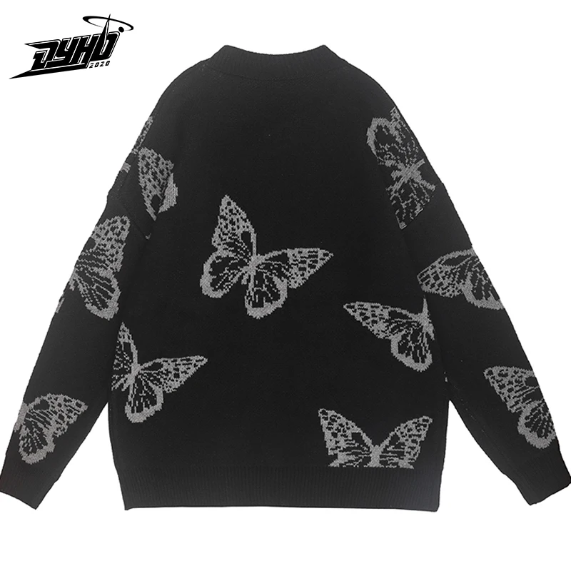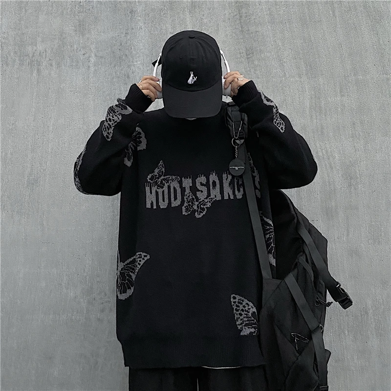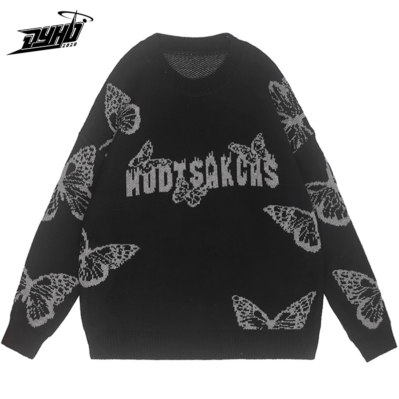 Трикотажный мужской свитер в стиле Харадзюку, модный тонкий пуловер с бабочками для мужчин и свободные топы в стиле кэжуал, уличная одежда в стиле хип-хоп, 2021