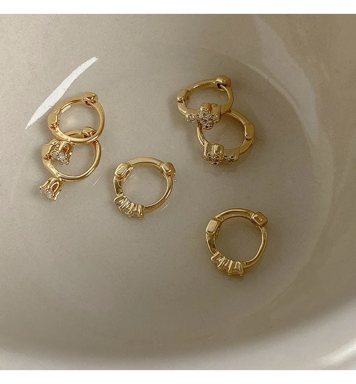 Корейский простой пирсинг крест цветок обручи huggie серьги кольца ...