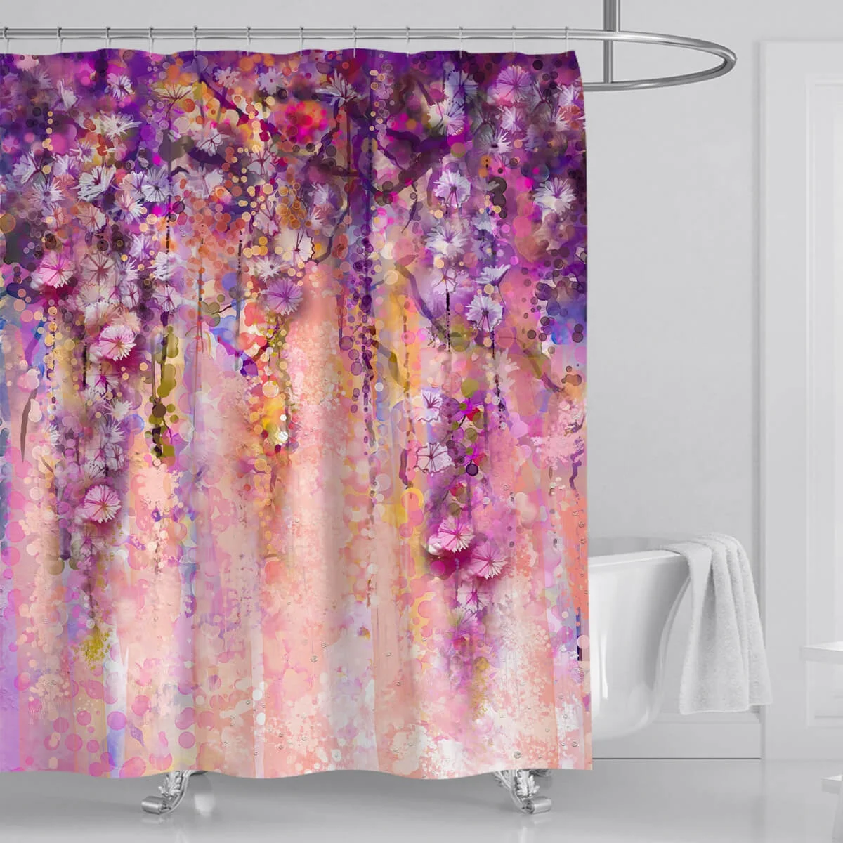 Фиолетовый букет с цветочным принтом, водонепроницаемые аксессуары для ванной комнаты, домашний декор, занавески, занавески для душа и ковры