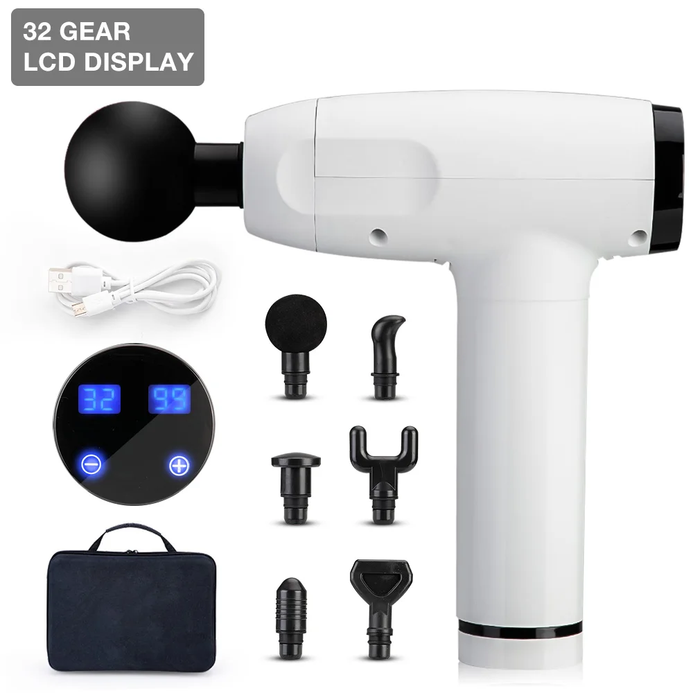 Массажный пистолет для расслабления мышц, прибор для массажа тканей с разъемом USB Type-c, 32 скорости, облегчение боли, вибрация, Массажная терапия, упражнения