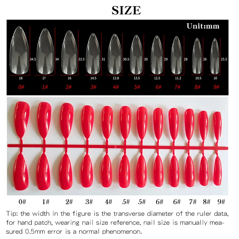 Название продукта: накладные ногтиСпецификация: 100 шт.Классификация продукта для ногтей: инструменты для ногтей Характеристика:1.100% Абсолютно Новый.2. Для профессионального наращивания ногтей.3. Идеальный выбор для вашей моды ногтей.4. Простота в использовании, точное, идеальное украшение и долговечность.5. Подходит для использования с гелем, акрилом или стекловолокном.6. Различные размеры на ваш выбор, подходят для большинства людей.7. Можно добавить украшения для ногтей на ногти и создать свой собственный стиль и узор.8. Для профессионального салона или домашнего использования. Как использовать:1. Отожмите стороны и область кутикулы для точного прилегания с помощью палочки;2. Очистите ногти от любого польского масла с помощью ацетона для удаления лака;3. Выберите правильный размер ногтей для каждого пальца;4. Нанесите клей на ногти;5. Нанесите тонкий слой клея на натуральные ногти;6. Начиная с кутикулы, нажмите и удерживайте в течение 5 секунд;7. Напиши и формируем новые ногти при необходимости. Удалите советы:Положите ногти в теплую воду в течение 2 минут, и стикер для ногтей может быть удален легче.Не удаляйте его резко, и это может нанести вред поверхности ногтей. Примечание:Ввиду того, что Замеры производились вручную, замеры сделаны вручную, поэтому возможны 0,05 см считается допустимой.Между тем, цвет может немного отличаться от цвета экрана с разным разрешением. Надеюсь, вы не против.Если размер ваших ногтей больше, чем у других, вы можете выбрать Длинные накладные ногти в нашем магазине.