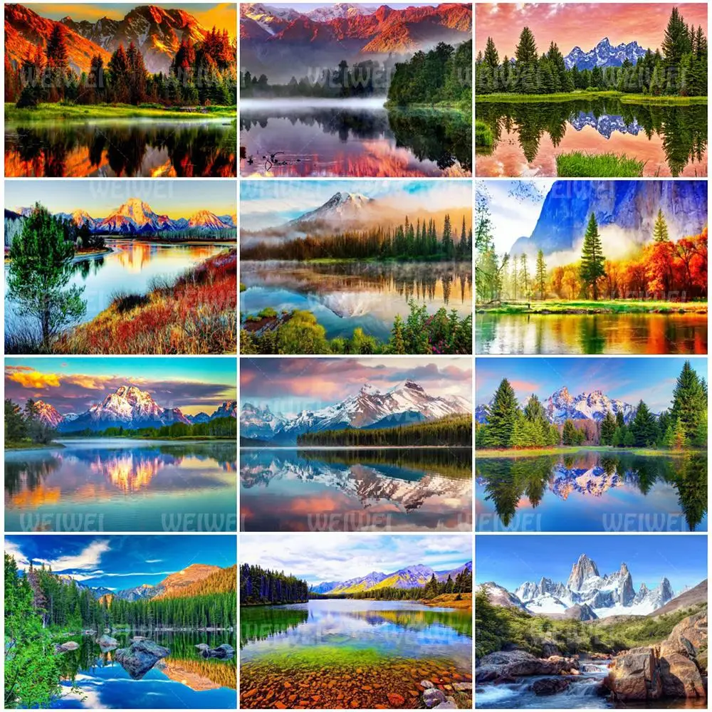 Алмазная живопись 5D "сделай сам" с изображением пейзажа горы, вышивка из круглых страз, рисунок озера стразы, вышивка крестиком, Декор