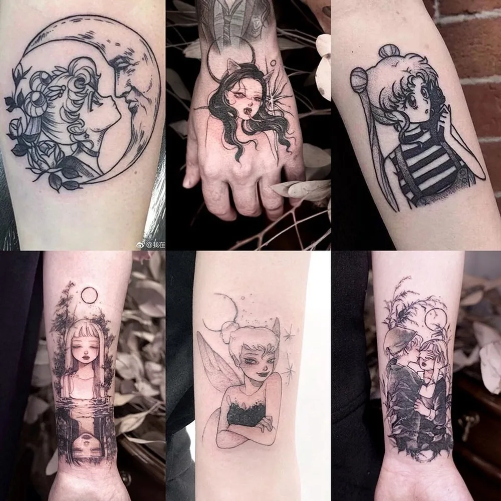 30 шт. тату-наклеек в комплекте темная черная луна ветер мультфильм...