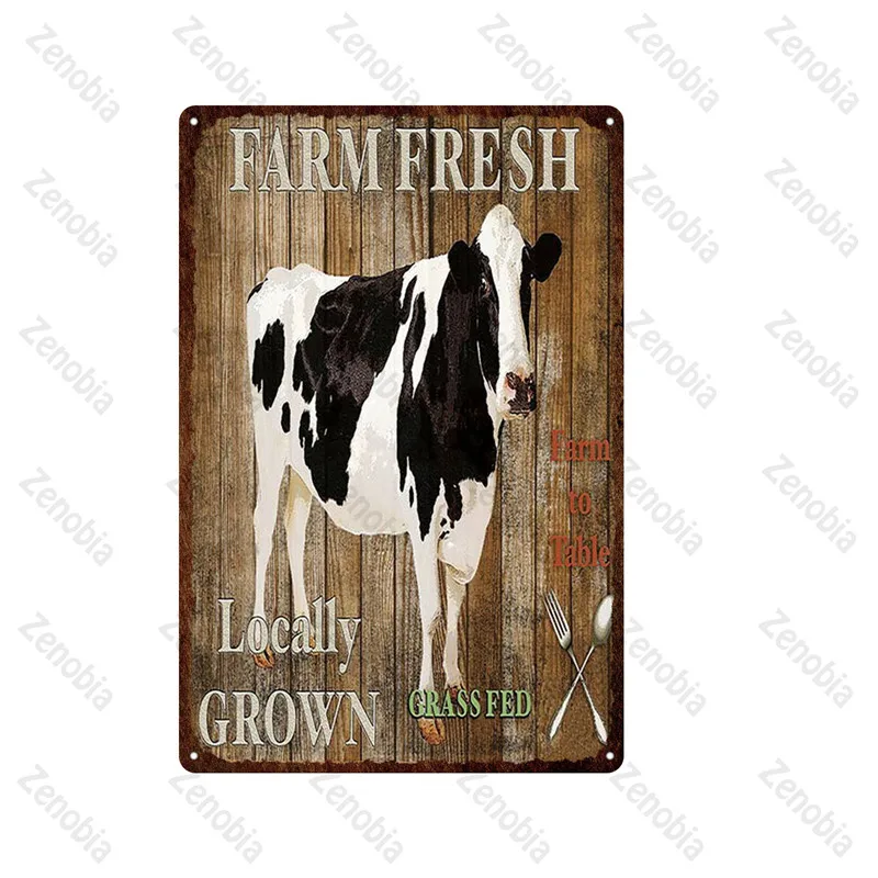 Ферма свежие яйца металлический знак курица говядина корова утка мя...