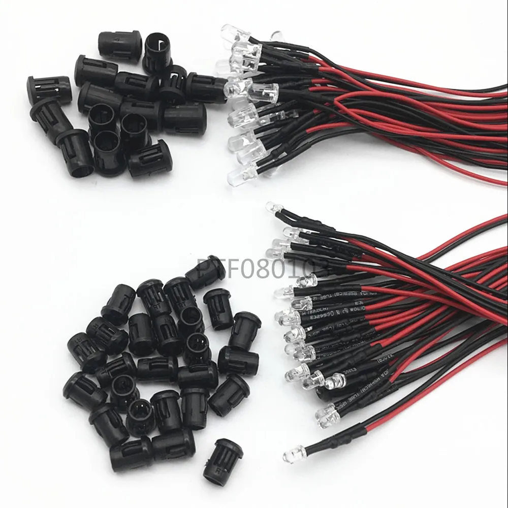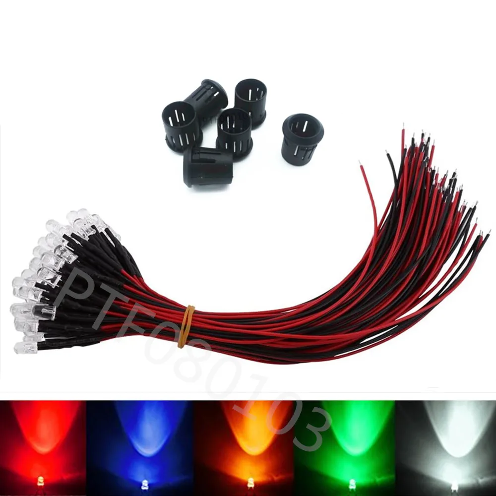 20-100 шт 3 мм/5 мм красный/зеленый/синий/RGB 12V DC круглый Предварительно проводной светодиодный прозрачный с пластиковым держателем