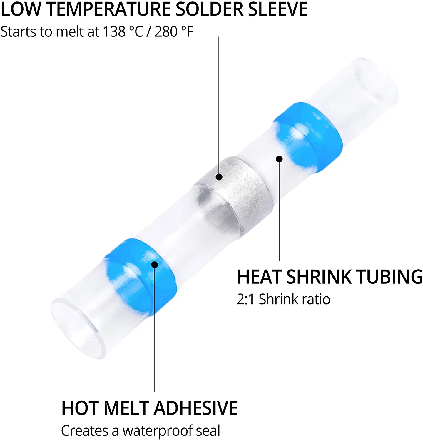 Комплект соединителей для пайки, AMPCOM термоусадочная Стыковая Клемма, водонепроницаемое изолированное электрическое стыковое соединение проводов