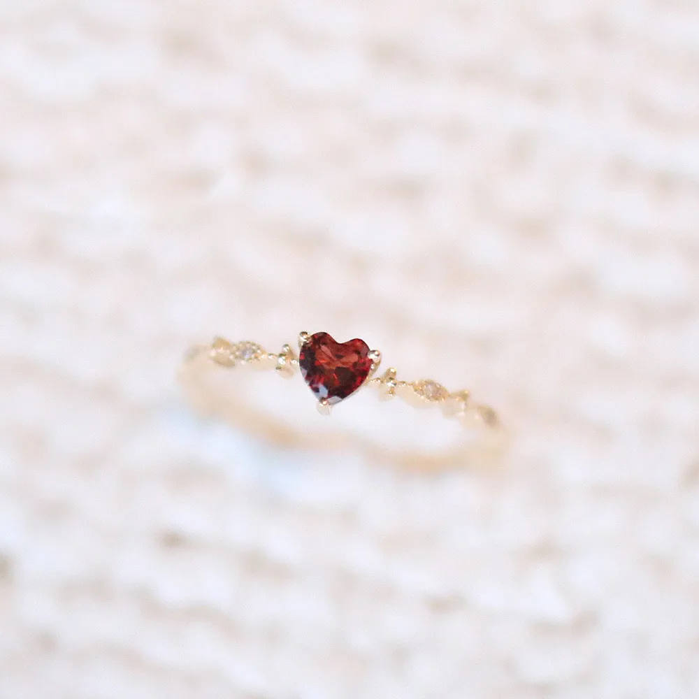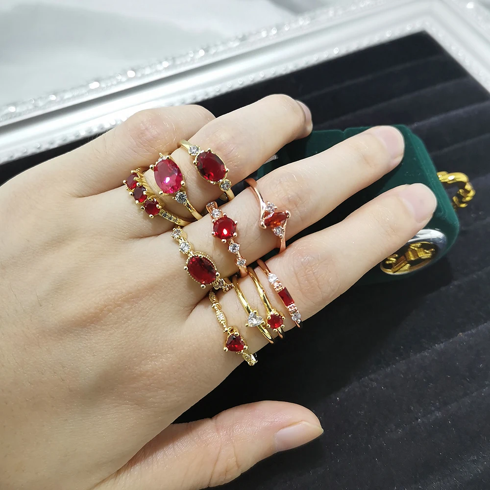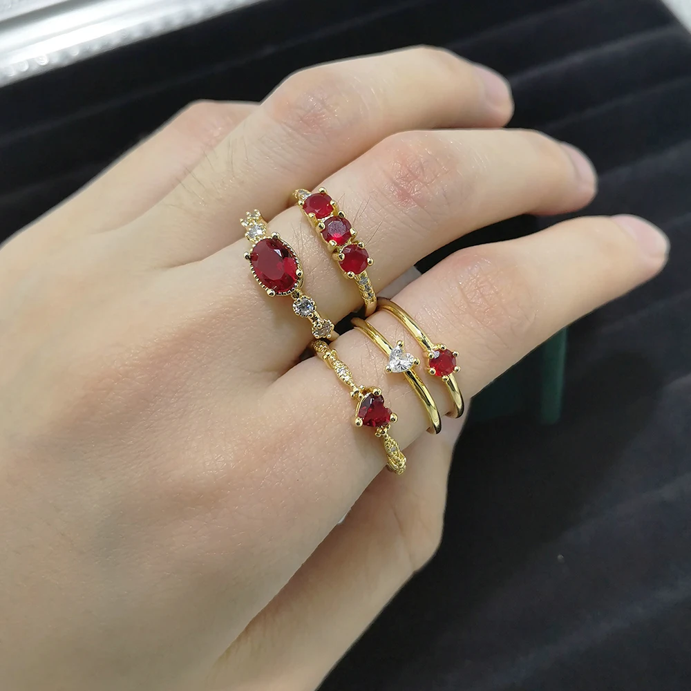 Романтические изящные кольца для женщин с красным цирконом, тонкое сердце, корейский стиль, свадебные подарки, кольца да для девушки KAR272