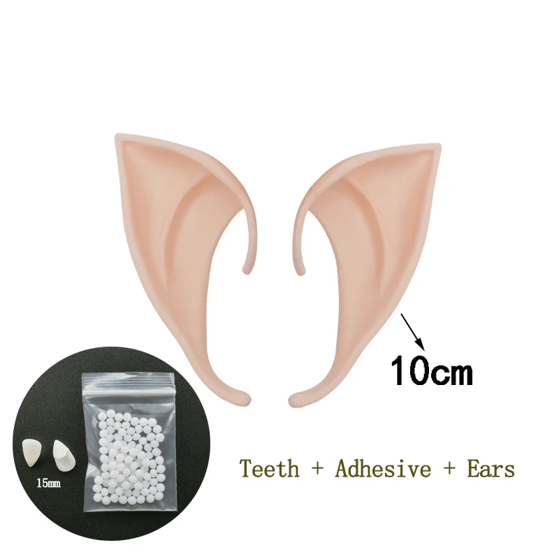 Зубы вампира на Хэллоуин с клейкими резиновыми протезами, клыки и латексные уши эльфа, реквизит для костюма для вечеринки, праздничные украшения сделай сам, 1 комплект