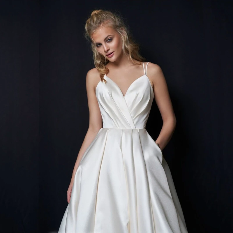 Простое Элегантное свадебное платье с вырезом сердечком, высоким разрезом по бокам, сатиновые свадебные платья, сексуальное платье невесты на бретелях-спагетти