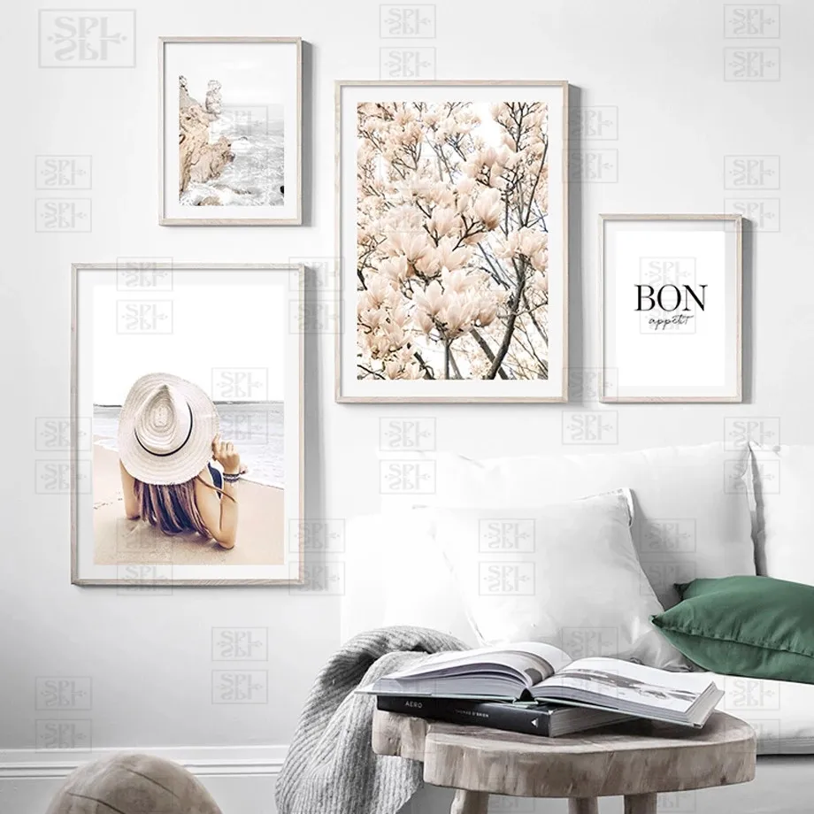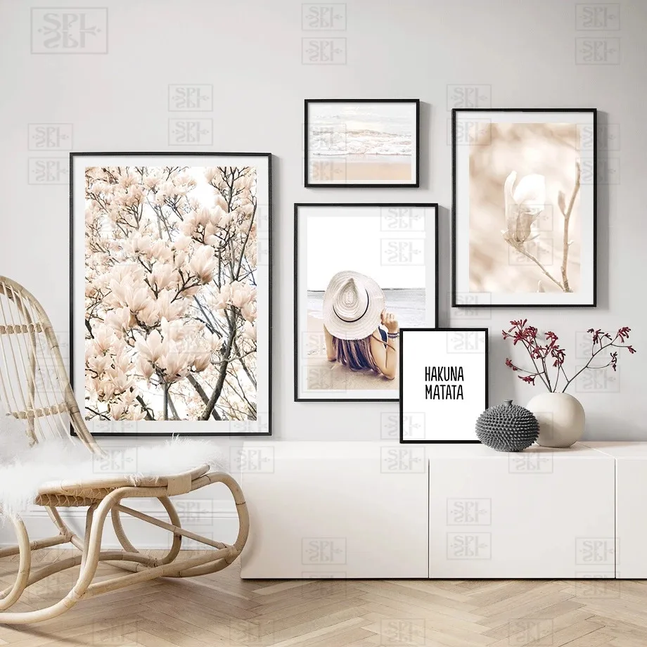 Пляжные волны бегония цветы женские весенние настенные художественные картины холст скандинавские постеры и принты настенные картины для декора гостиной