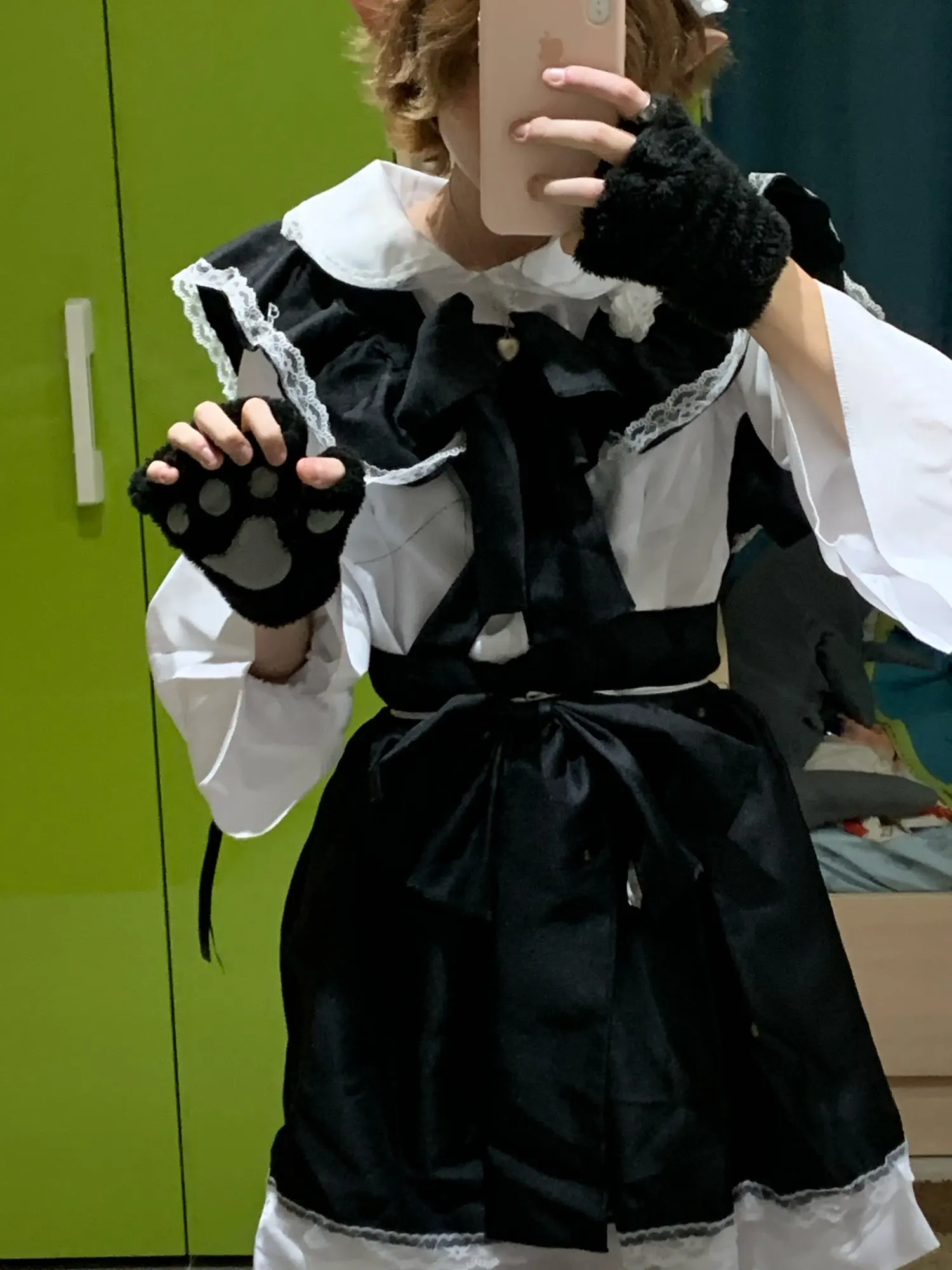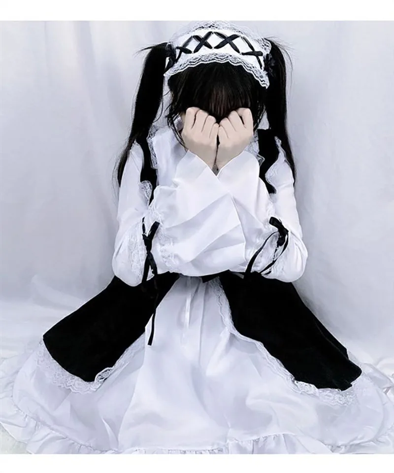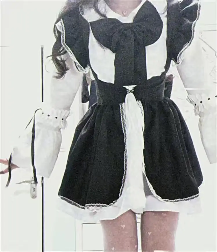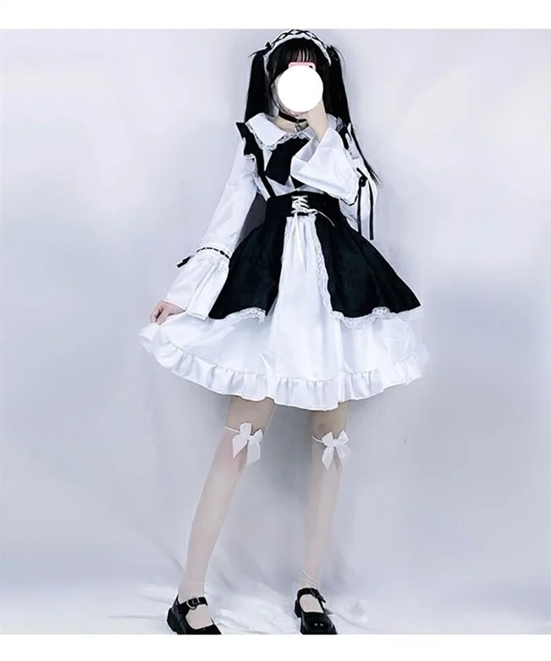 Женский костюм горничной для косплея в стиле Лолиты, эротический костюм каваи для кафе, черного, белого цвета, мужское платье с милым бантом, Униформа, фартук