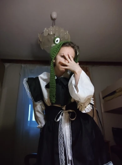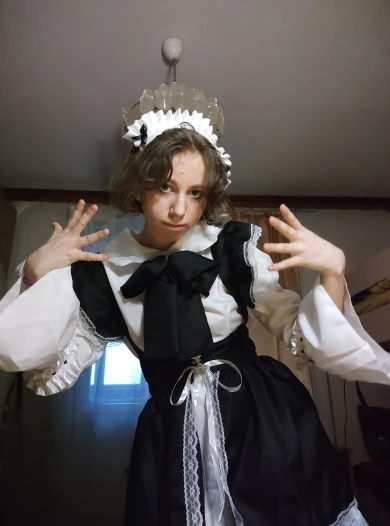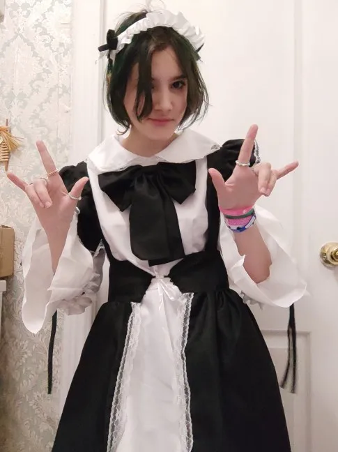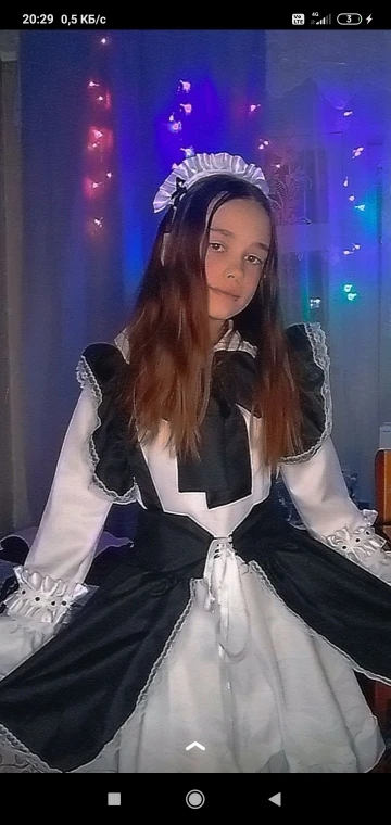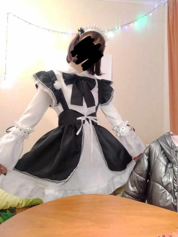 Костюм хороший, в подарок положили чаек и цветочек, вероятно, заколка. Моей голове долго думалось как правильно надеть фартук, надеюсь у других такой проблемы не возникнет. Главный минус это миллион торчащих ниток. Их правда ОЧЕНЬ много, поэтому пришлось подрезать. Дырочки для фартука, куда нужно засунуть ленточку, очень маленькие пришлось приловчиться и засовывать их через булавку. Спереди это выглядит аля корсет, но главное правильно из завязать и не затягивать слишком туго, а то получится ересь. Серьезных увечий не заметила, все супер.