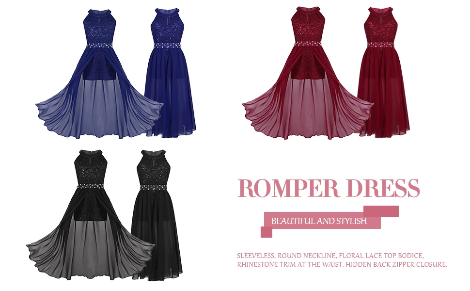 Особенности:Платье-комбинезон изготовлено из полиэстера и шифона, ручная стирка.Таблица размеров означает возраст для девочек, но только для общего руководства.Платье без рукавов с круглым вырезом для девочек, кружевной топ с цветочным узором корсетом; С резинкой на стразы отделкой на талии. Скрытая молния сзади.1 слой Макси-длины с шифоновым наложением крепится вокруг талии. Полная подкладка. Красивое и стильное платье для вашей девочки.Идеально подходит для школьных танцев, дней рождения, праздников, фотосессий, официальных мероприятий или других особых случаев.