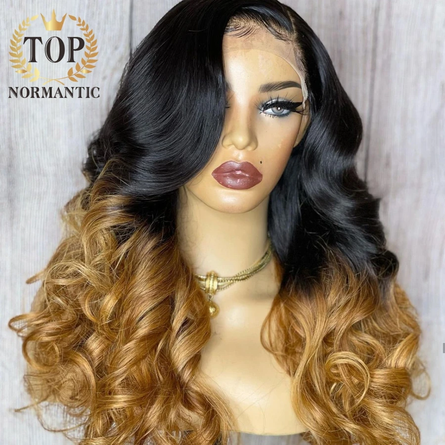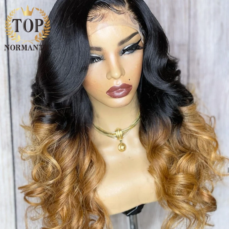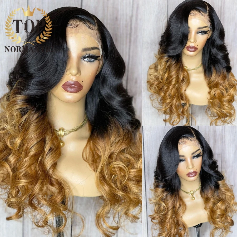 Topnormantic Ombre Цвет 13x 6 кружевная Передняя фотосессия бразильские человеческие волосы Remy Свободные волнистые парики для женщин