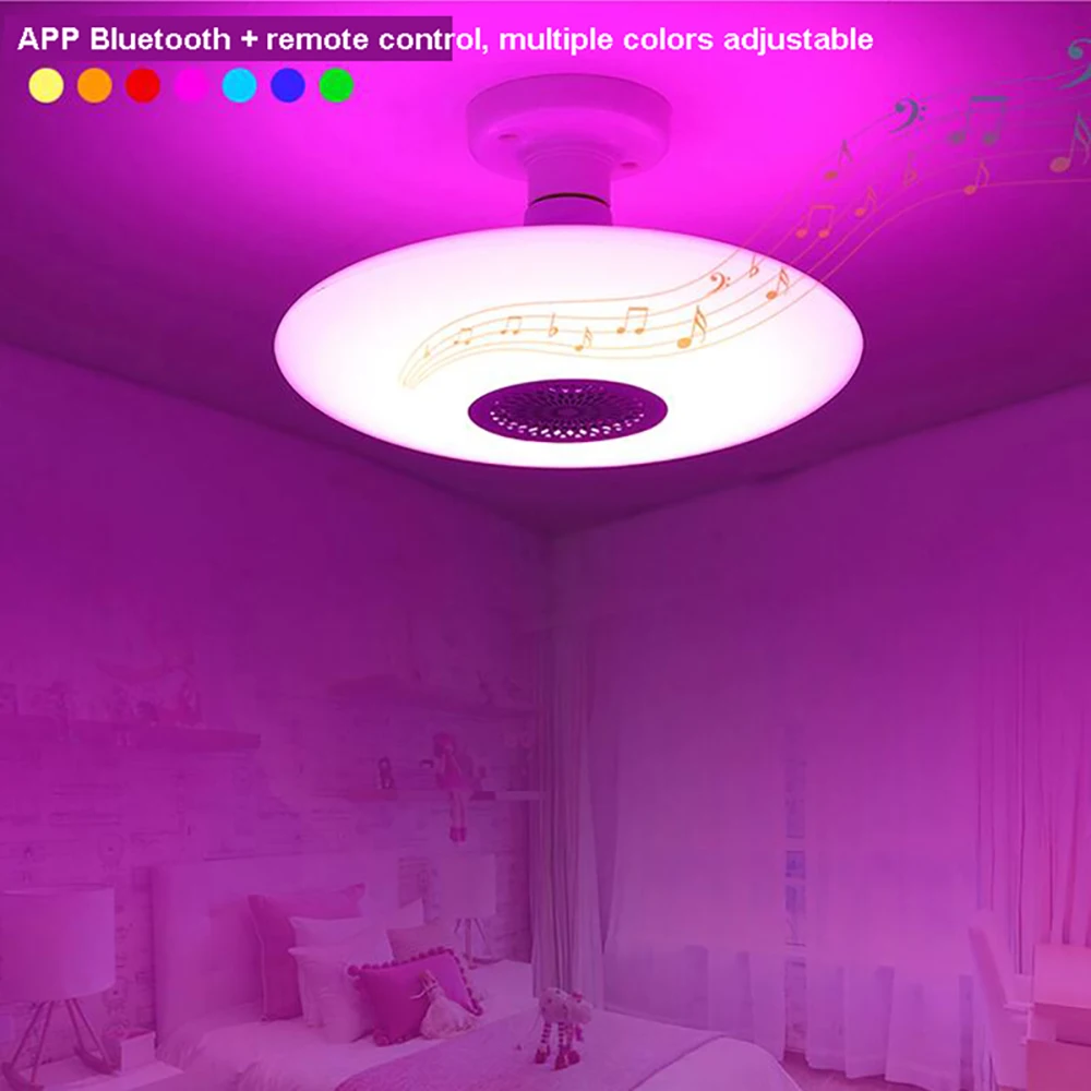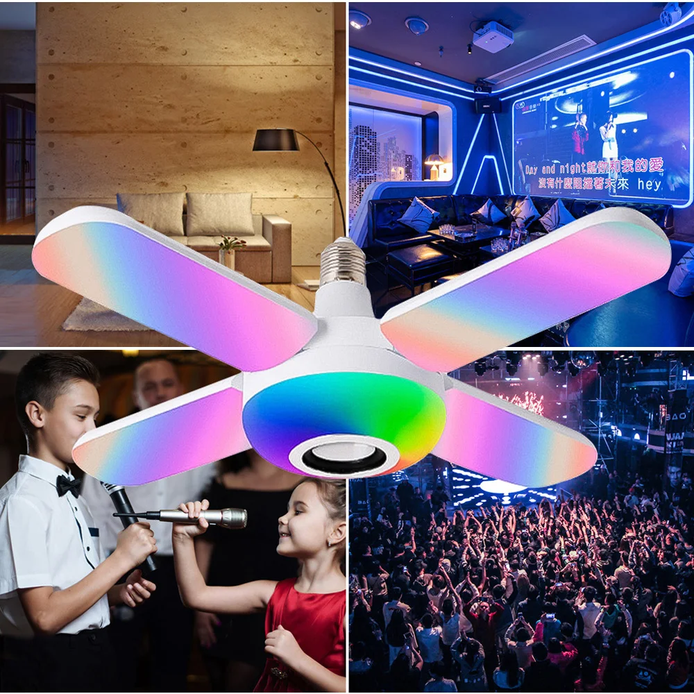 Умная Bluetooth музыкальная лампа E27, светодиодный ночсветильник с аудиодинамиком 50 Вт 30 Вт, беспроводные потолочные лампы для гостиной с дистанционным управлением через приложение