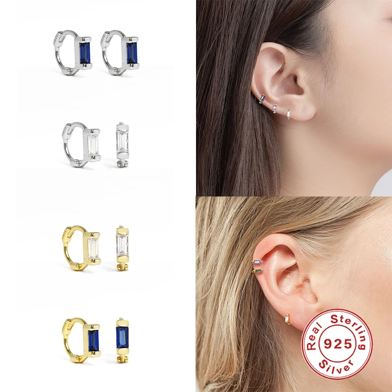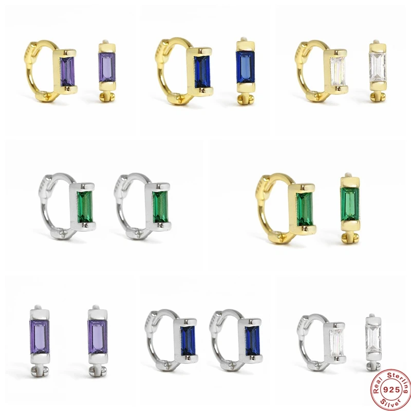 Женские серьги-кольца CANNER, 925 пробы с серебряными ушками и пряжкой, цветные квадратные серьги с цирконием, 6 мм