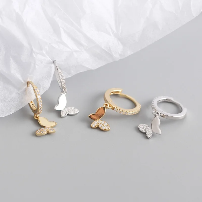 Женские серьги-кольца в виде бабочки из стерлингового серебра 925 п...