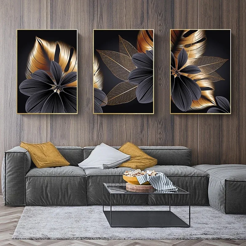 Картина на холсте с изображением листьев черного и золотого растений, абстрактная Настенная картина, декор для гостиной в скандинавском стиле, картина