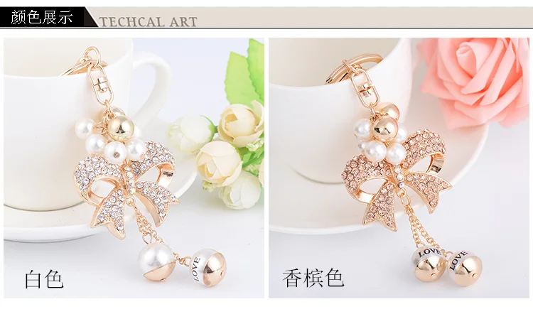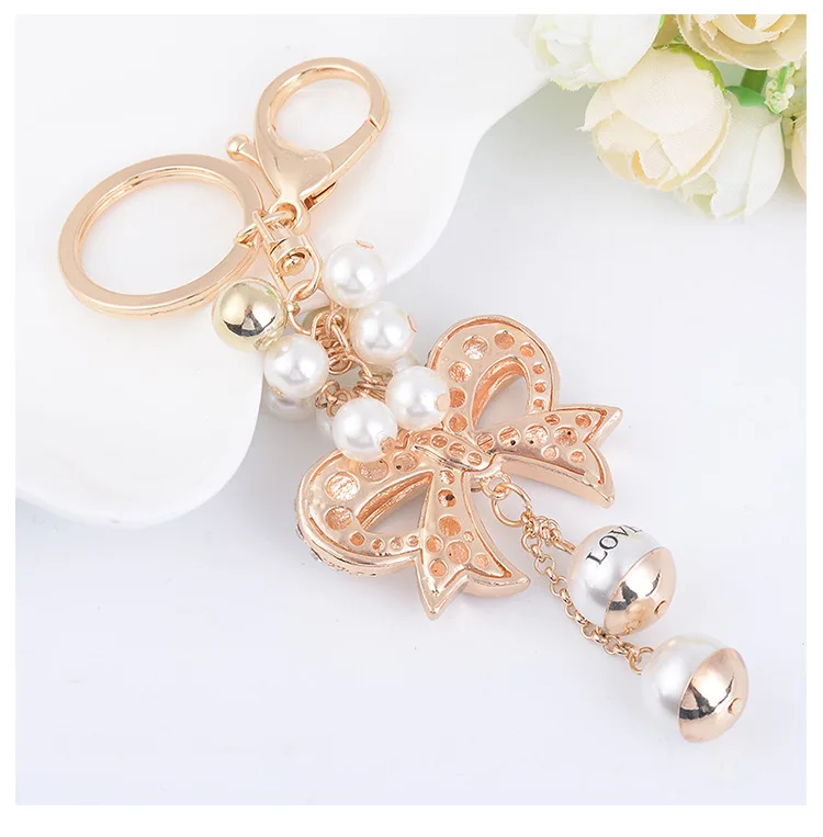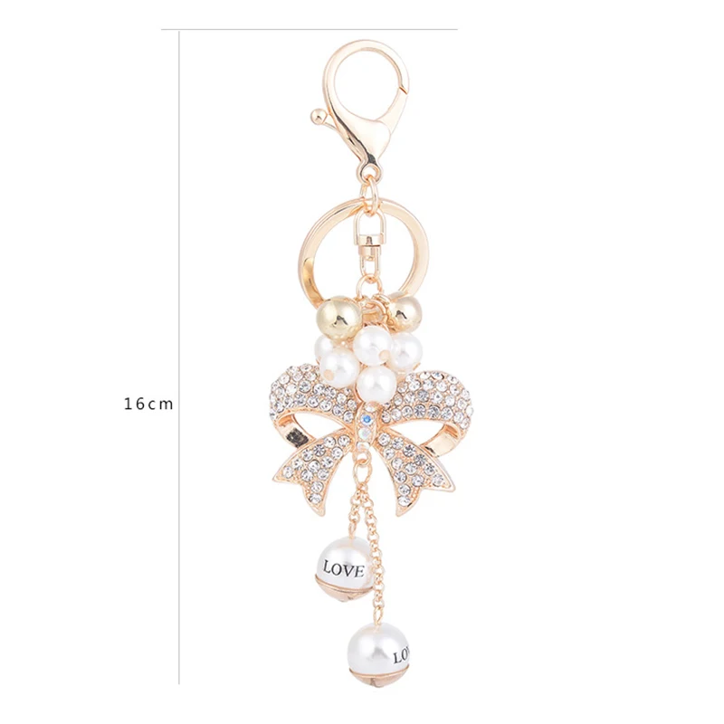 Цепочка для ключей, с искусственным жемчугом, хрустальным бантом, автомобильный держатель, подвеска для сумки для женщин, подарок для девочек, сплав, брелок, украшение, модные украшения