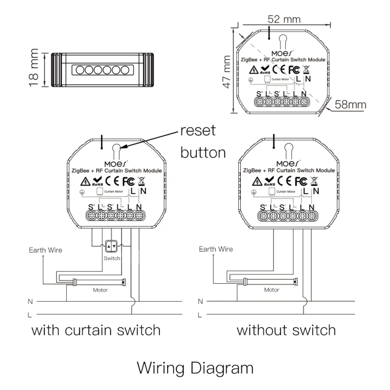 1. Используйте с гораздо большим удобством с функцией остановки на традиционном переключателе: действительно хорошая замена для еще одного нового смарт-рольставни переключатель для работы с традиционным переключателем штор для реализации интеллекта. Нажмите ваш традиционный переключатель занавеса один раз после переключения вверх/вниз (На одной и той же кнопке), чтобы вручную остановить ваши шторы легко. Также, он может быть подключен к вашим цепные роликовые шторы затвора или Мотор занавеса, чтобы умный контроль ваших штор.