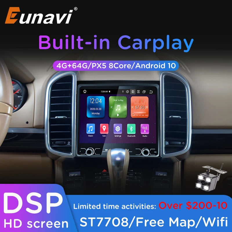 Автомагнитола Eunavi, мультимедийный Видеоплейер 2 din на Android 10,0, 4 Гб ОЗУ, 64 Гб ПЗУ, с экраном 8,8 ", для Porsche Cayenne 2011-2017, с GPS, типоразмер 2 din