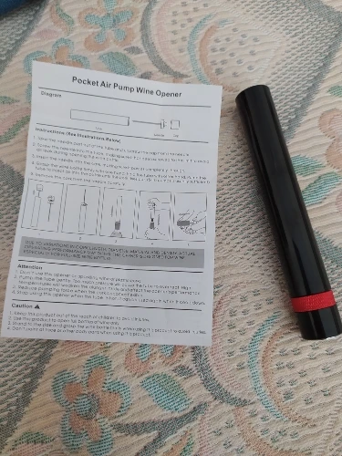 Открывалка работает как сообщенная, но работа может варьироваться в зависимости от бутылки вина; Некоторые из них могут быть легче открыть. Имейте в виду, что воздух, который вы клаете в бутыль, приведет к давлению для извлечения пробки. Плотно удерживайте открывалку.