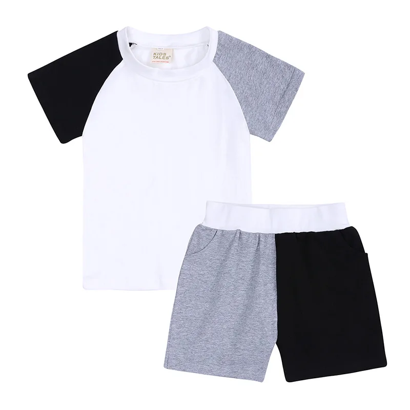 Коллекция 2021 года, летний модный Пижамный комплект для детей ясельного возраста, хлопковые Лоскутные Топы с короткими рукавами для мальчиков и девочек + шорты, штаны, От 6 месяцев до 4 лет из 2 предметов