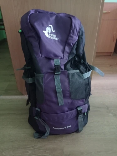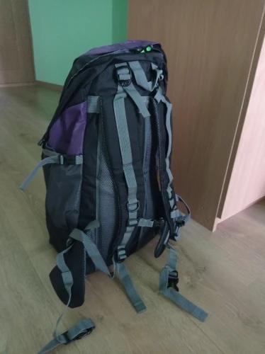 Цвет красивый фиолетовый, хотя иногда так свет падает, что больше баклажан. Первый раз завела походный рюкзак. Вес со спины действительно снимается, хоть и нет твëрдой спины. Нижних лямок не хватает по длине ни на коврик, ни на палатку, буду пришивать. Вообще нравится рюкзак, просто мне видимо на 100л надо брать, как минимум, чтобы ничего не урамбовывать. Этот совсем для легкоходов! Я вместила туда еле-еле палатку дизертифокс одноместную, спальник синтепон самый летний, пуховку и литровый кателок. На фото наполовину пустой