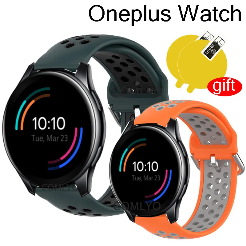 Ремешок спортивный силиконовый для Oneplus Watch band, дышащий браслет для смарт-часов One plus, защитная пленка для экрана