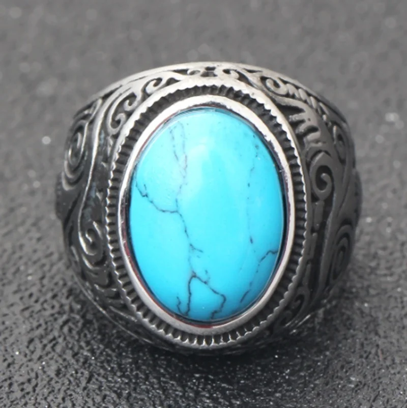 Juno огромное винтажное ювелирное изделие с голубым агатом кольцо из сплава мужское кольцо ювелирные изделия Размер 7-14