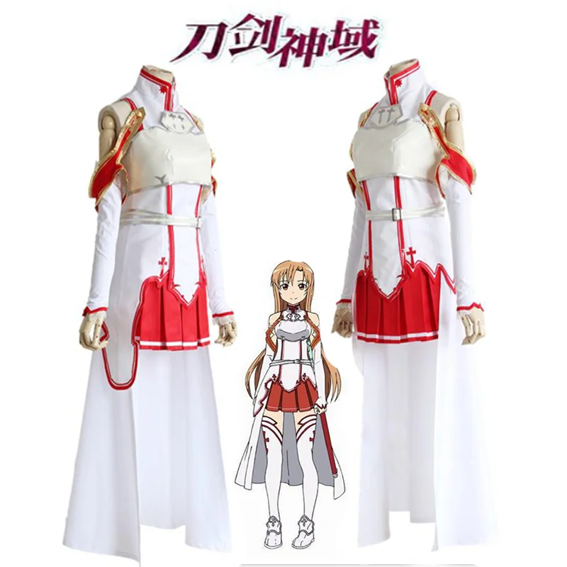 Косплей косплей, униформа для Хэллоуина, костюм САО Асуна, костюм для битвы с париком и обувью