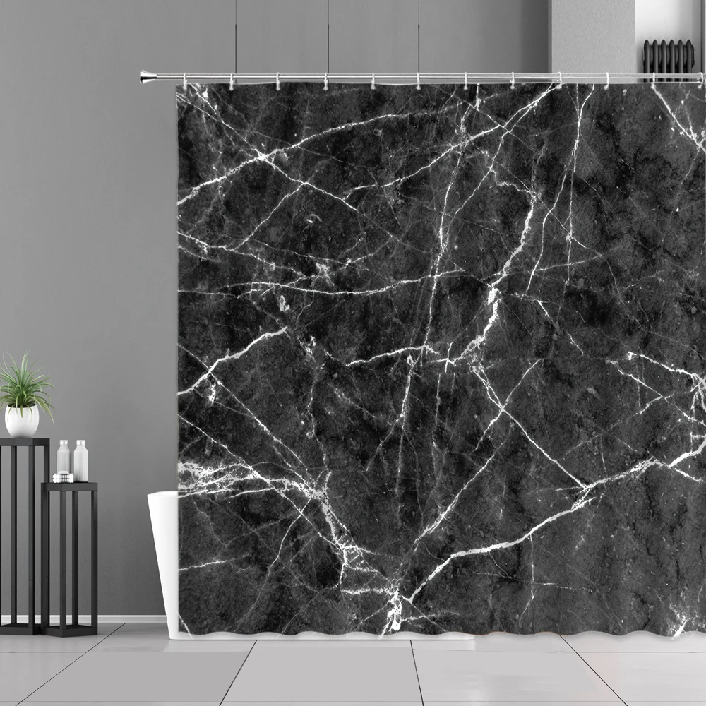 Водонепроницаемая занавеска для душа, Черная Мраморная белая полосатая декоративная Водонепроницаемая Штора для ванной комнаты, в современном стиле, s-образный экран