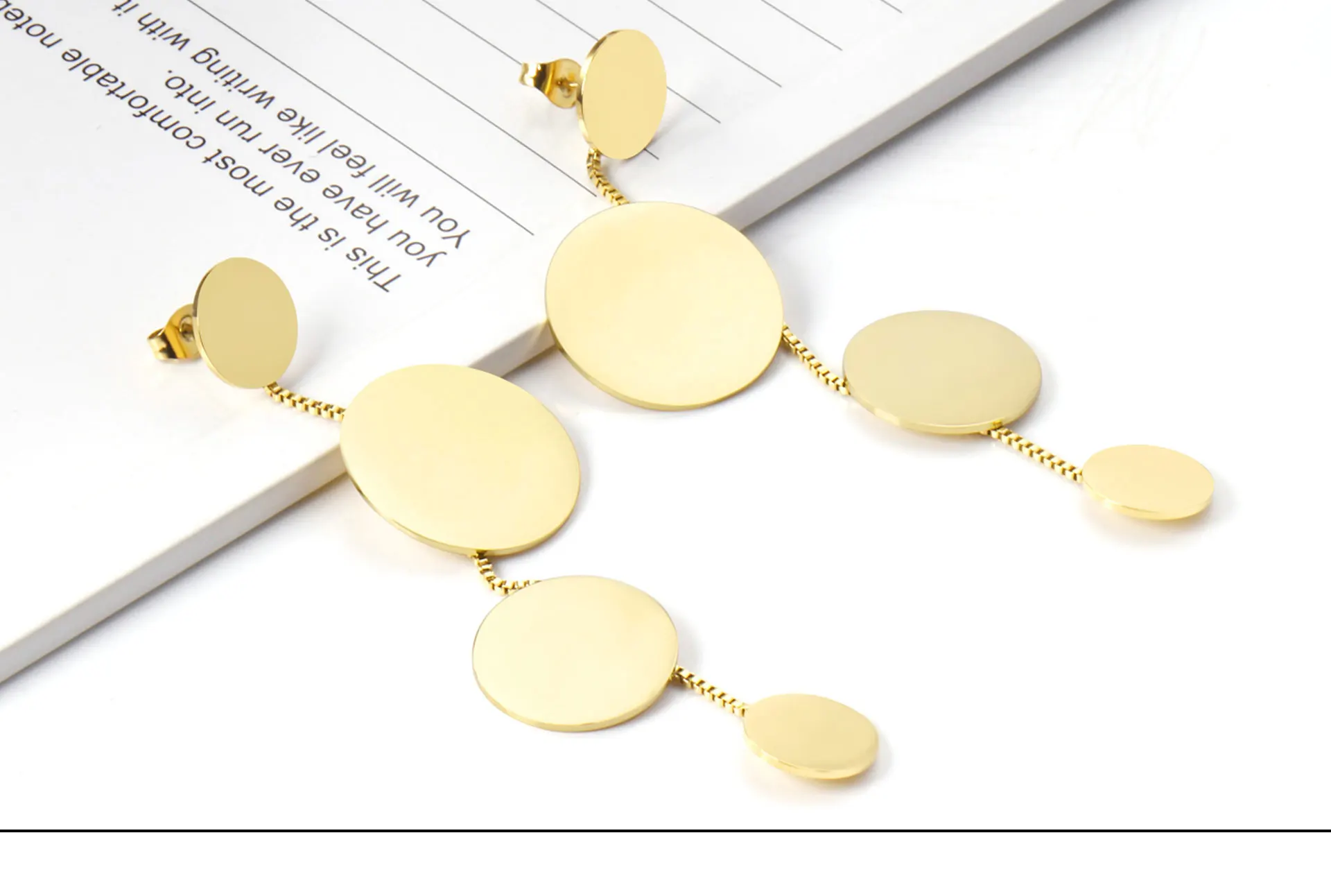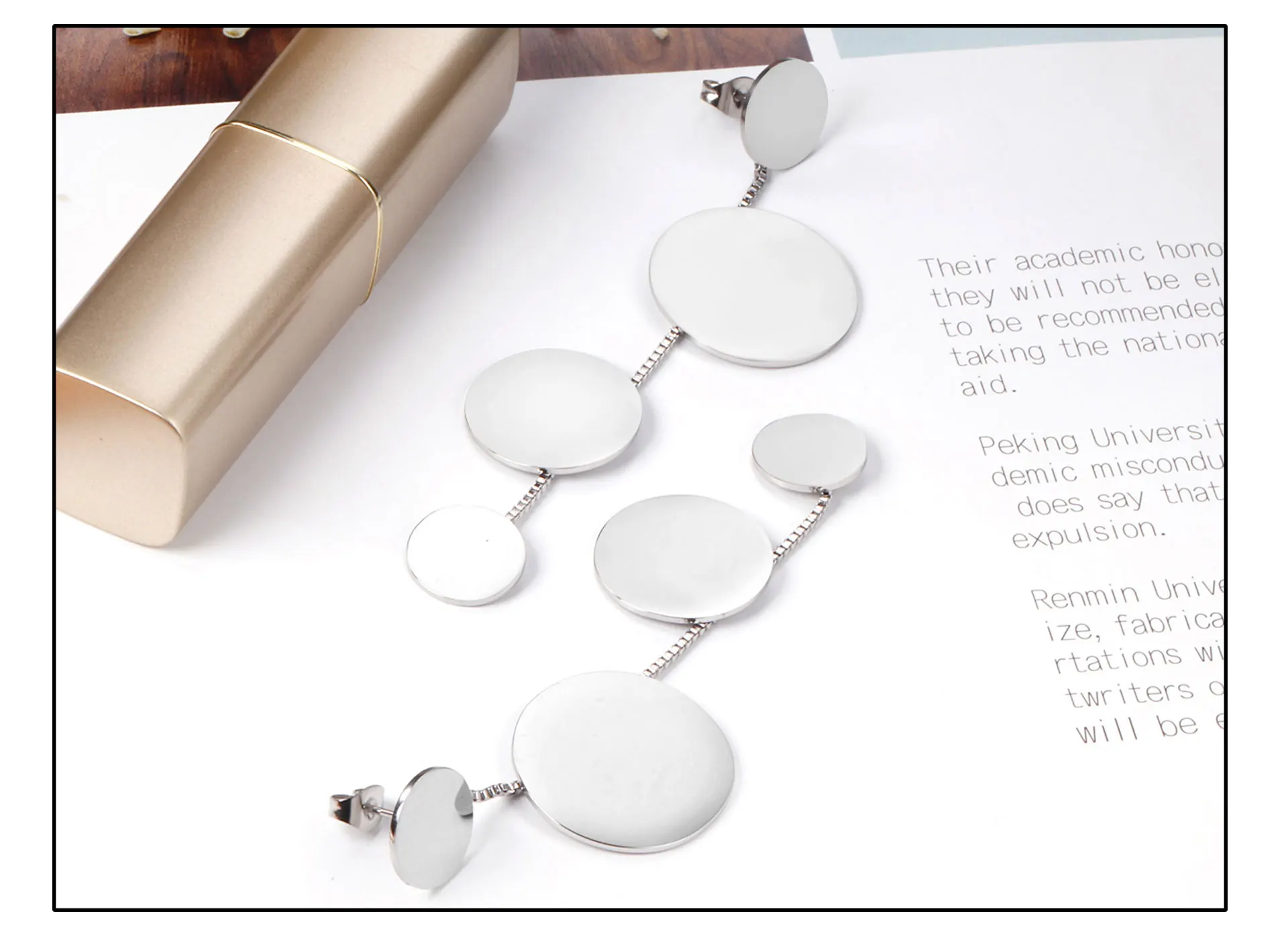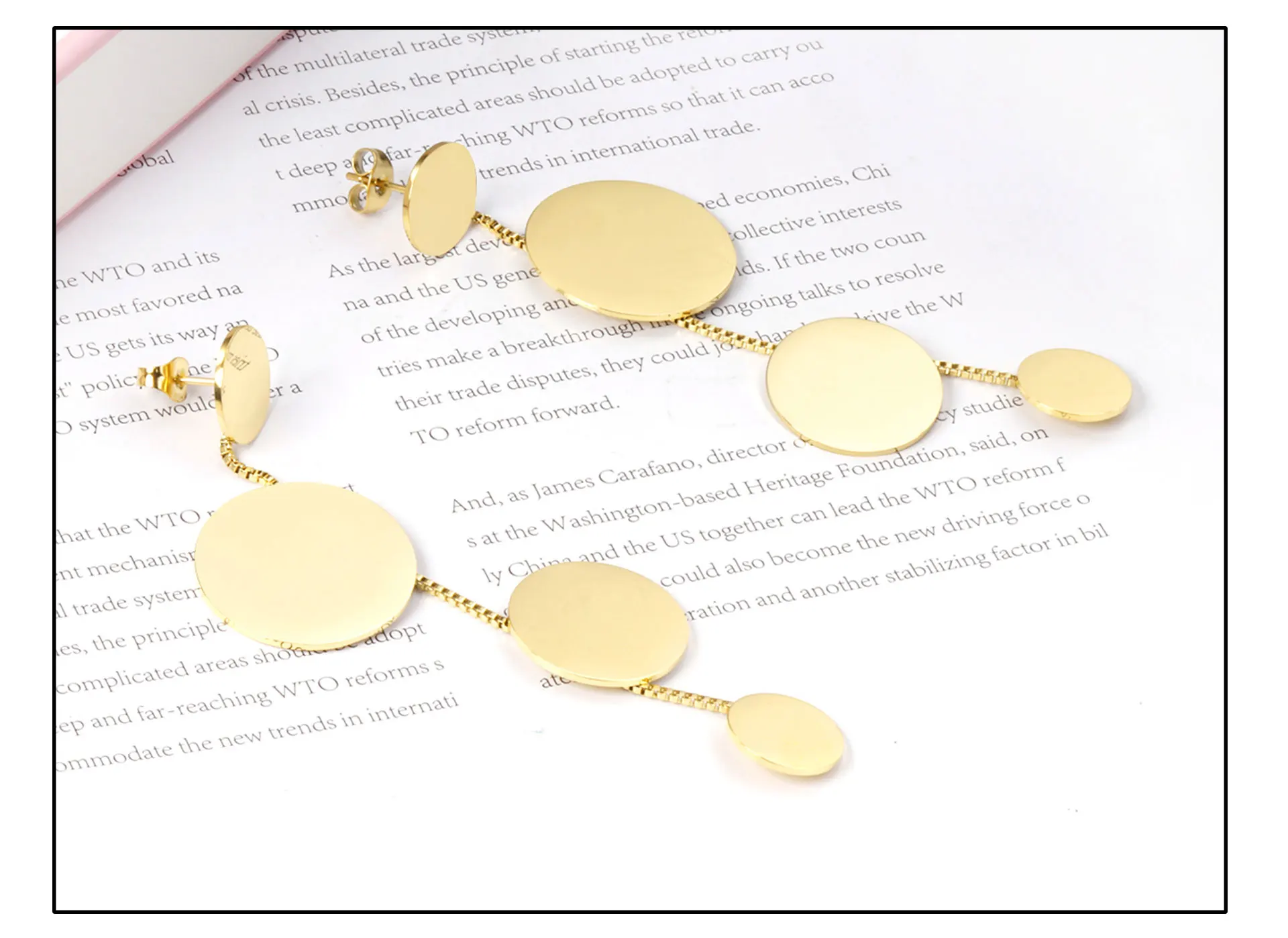 Роскошные геометрические серьги, забавные ювелирные изделия из нержавеющей стали, золотого цвета, круглые подвески, висячие серьги, Женские аксессуары, шикарный стиль