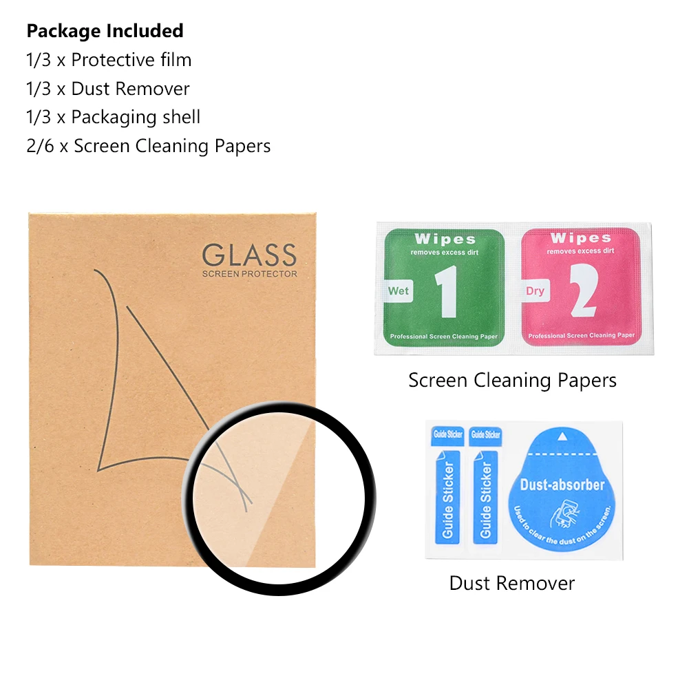 Легко устанавливается. Уникальный клей обеспечивает легкость, отсутствие пузырей, идеально подходит для контуров экрана часов, с инструкциями по установке и инструментами для легкой установки протектора экрана.