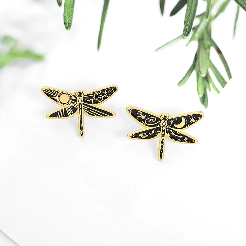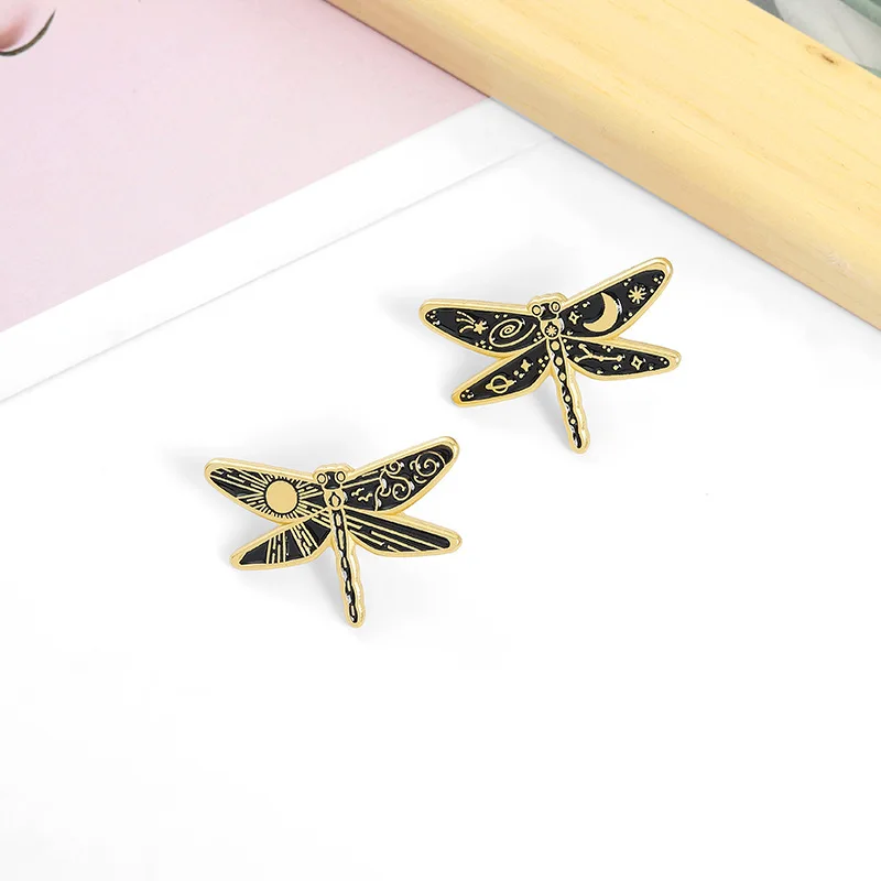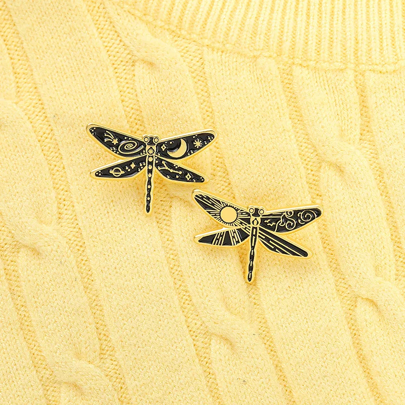 Солнце Луна Стрекоза эмалевые булавки на заказ день и ночь Броши с ...