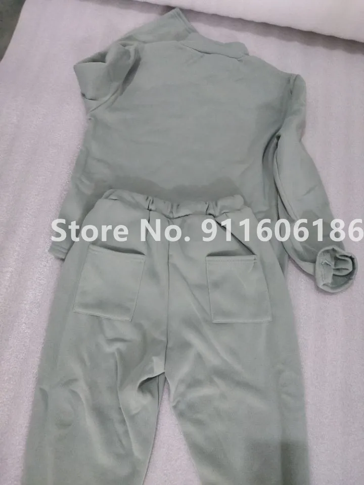 Трикотажный спортивный костюм из двух предметов, Однотонный свитер и эластичные брюки, с карманами на пуговицах и штаны на кулиске, 2021