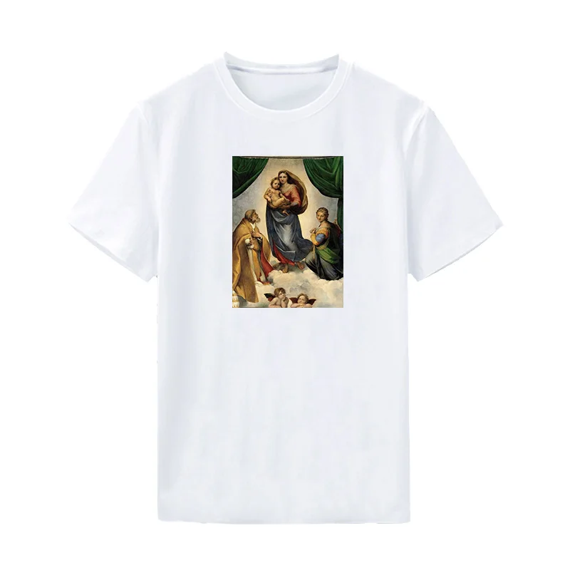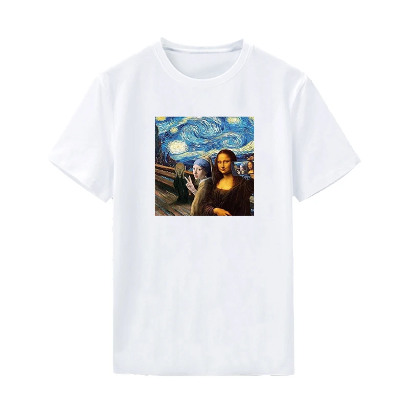 Сандалии для мужчин и женщин с О-образным вырезом Футболка с принтом известной картины Винсента Ван Гог "Мона Лиза", модные футболки для девочек Повседневная стильная футболка с короткими рукавами S-4XL