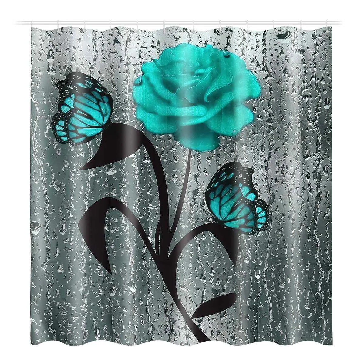 Водонепроницаемая занавеска для душа с рисунком зеленых бабочек и цветов, чехол для коврика для ванной, чехол для туалета, набор ковриков, дверная занавеска для ванной комнаты