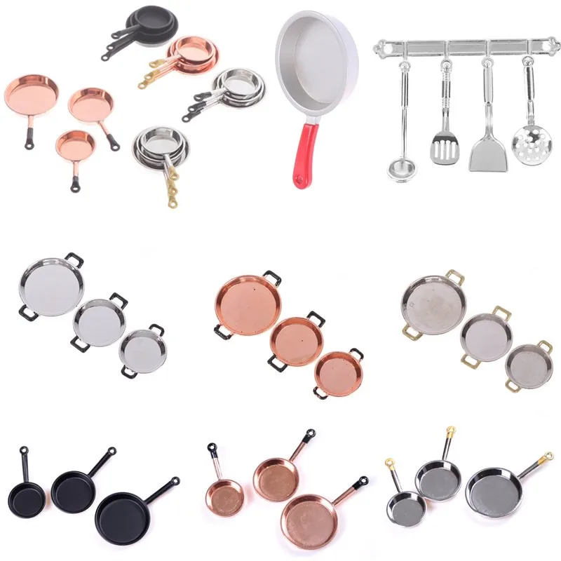 3 шт.компл. миниатюрная металлическая кастрюля для кукольного домик...