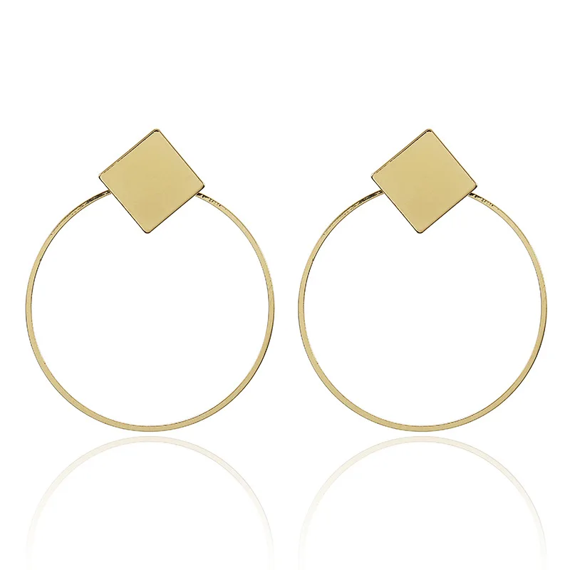 Золотые Квадратные серьги-гвоздики для женщин, Модная бижутерия 201...