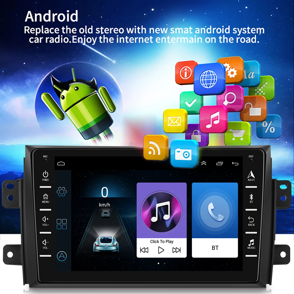 Автомагнитола Podofo, 2 DIN, Android, мультимедийный плеер для Suzuki SX4 2006-2016, 8 дюймов, Wi-Fi, Bluetooth, 2 Din, GPS-навигация, без DVD, радио