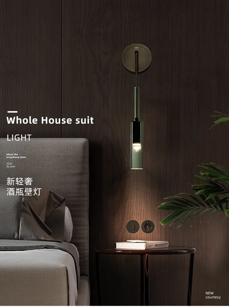 Скандинавская медная Хрустальная Подвесная лампа в стиле лофт, креативный стеклянный подвесной светильник в виде бутылки, дизайнерская прикроватная лампа для спальни, домашние декоративные осветительные приборы