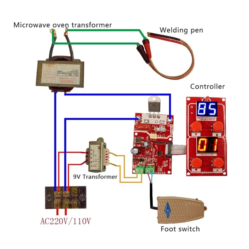 Панель управления точечной сварочной машины является контроллером, который самостоятельно разработан для DIY или простой сварки сопротивления. Принцип переключения фаз кремния используется для регулировки времени и тока для достижения цели сварки.