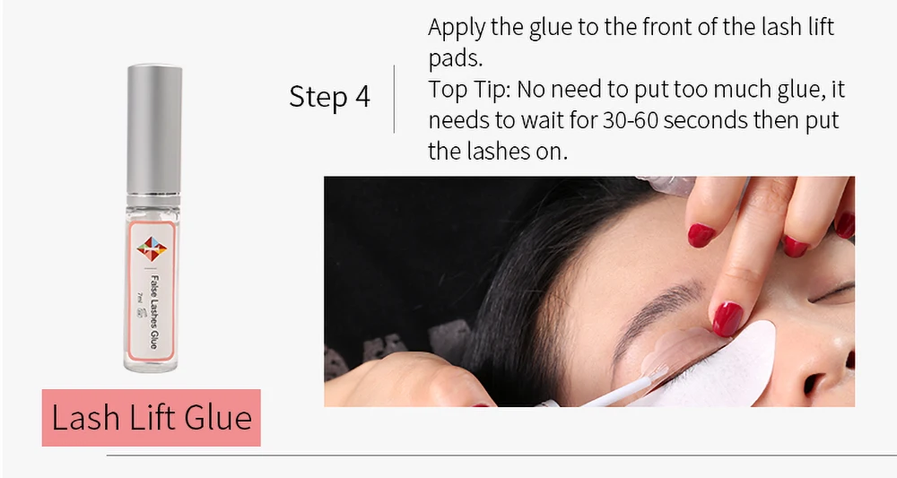 Шаг 1: Применение моющим средством #4 для удаления масла, пыли и остатки макияжаШаг 2: поместите под глаза накладки на нижние веки, чтобы убедиться, что все нижние ресницы покрыты. Это должно отделить верхнюю и нижнюю ресницы. Избегайте попадания Перми лосьона на кожу.Шаг 3: Нанесите клей на заднюю часть ресницы колодки с подъемом, подождите 20 секунд, а затем положите их на веки. Как можно ближе к вашей линии ресниц.Шаг 4: Нанесите клей на переднюю часть ресницы колодки с подъемом.Верхний совет: не нужно класть слишком много клея, его нужно ждать 30-60 секунд, затем надеть ресницы.Шаг 5: используйте кисть Y, чтобы поднять ресницы с корня на подушечки. Ресницы должны быть выровнены и не пересекаются друг с другом.Шаг 6: Нанесите лосьон #1 на ресницы, а затем накройте глаза пластиковой пленкой. (Время зарядки: 10-12 минут)Шаг 7: Удалите лосьон #1 с помощью Y кисти, затем нанесите фиксатор #2 на ресницы, а затем накройте глаза пластиковой пленкой. (Время фиксации: 10-12 минут)Шаг 8: Применение моющим средством #4, чтобы начисто все остатки с Y кисть, протерев расческа по бокам.Шаг 9: Снимите колодки с подъемом из верхней части вашей век, затем используйте способствует эффективному поглощению питательных лосьон #3 для питания ваших ресниц.