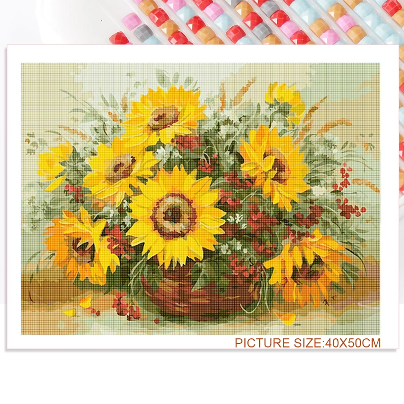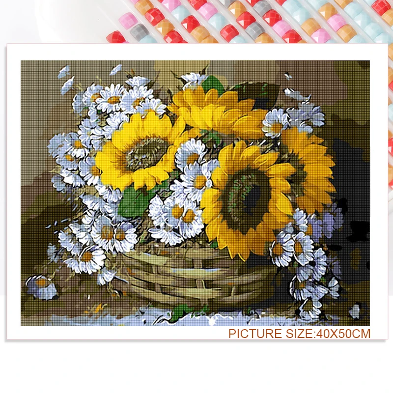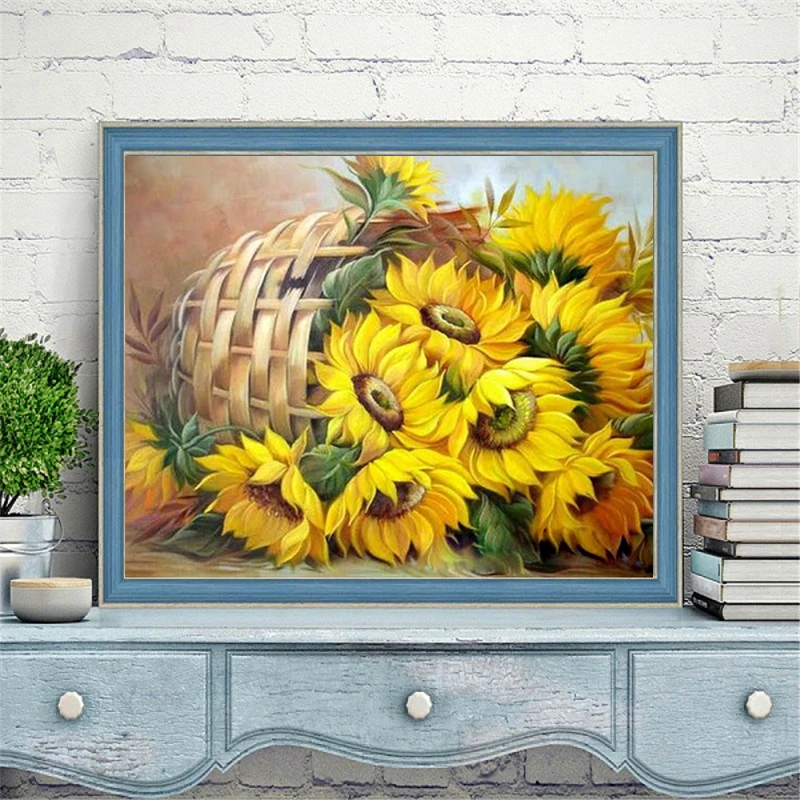 Алмазная картина с подсолнухами 5D, пасторальная картина с желтыми цветами, квадратнаякруглая, для рукоделия, алмазная вышивка, мозаика, искусство дома, Декор