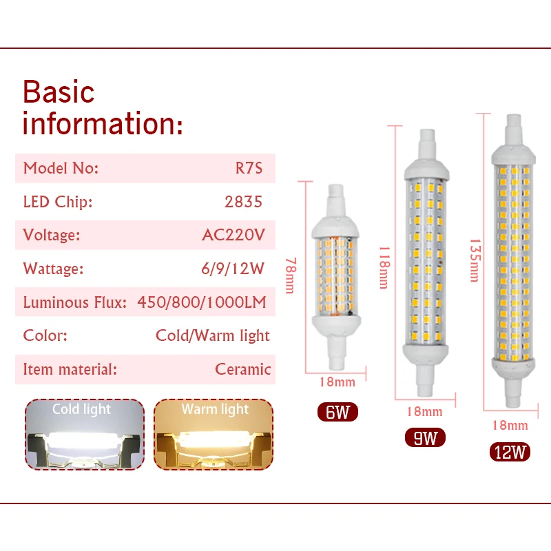 R7S LED 78 мм 118 мм 135 мм лампочка 6 Вт 9 Вт 12 Вт SMD 2835 Светодиодная лампа Lampada 220 В-240 В кукурусветильник энергосберегающий заменить галогенсветильник